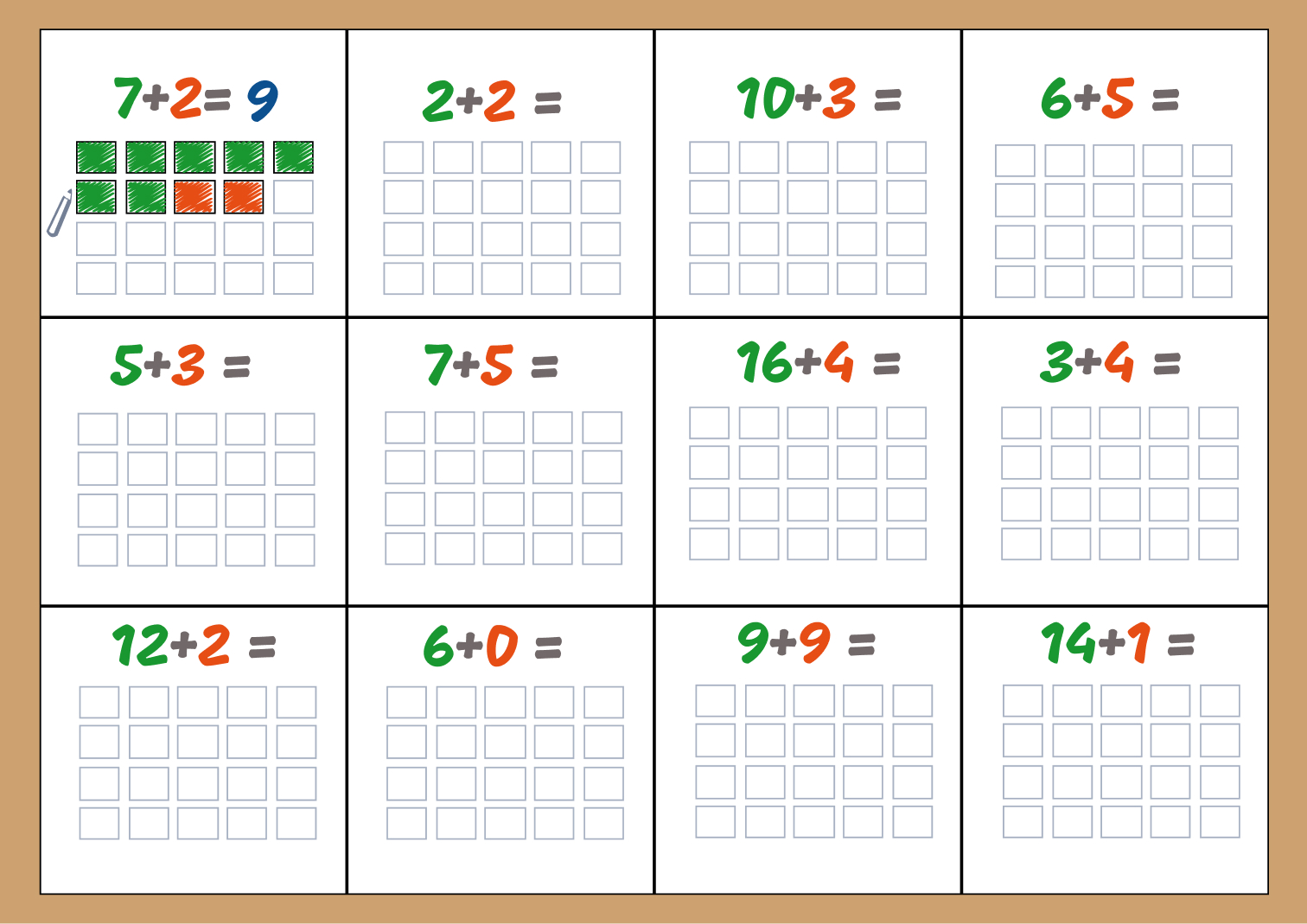 W zestawie znajdziesz także trudniejsze karty bez kratek pomocniczych, idealne dla dzieci, które liczą już pewnie i potrzebują dodatkowego wyzwania.